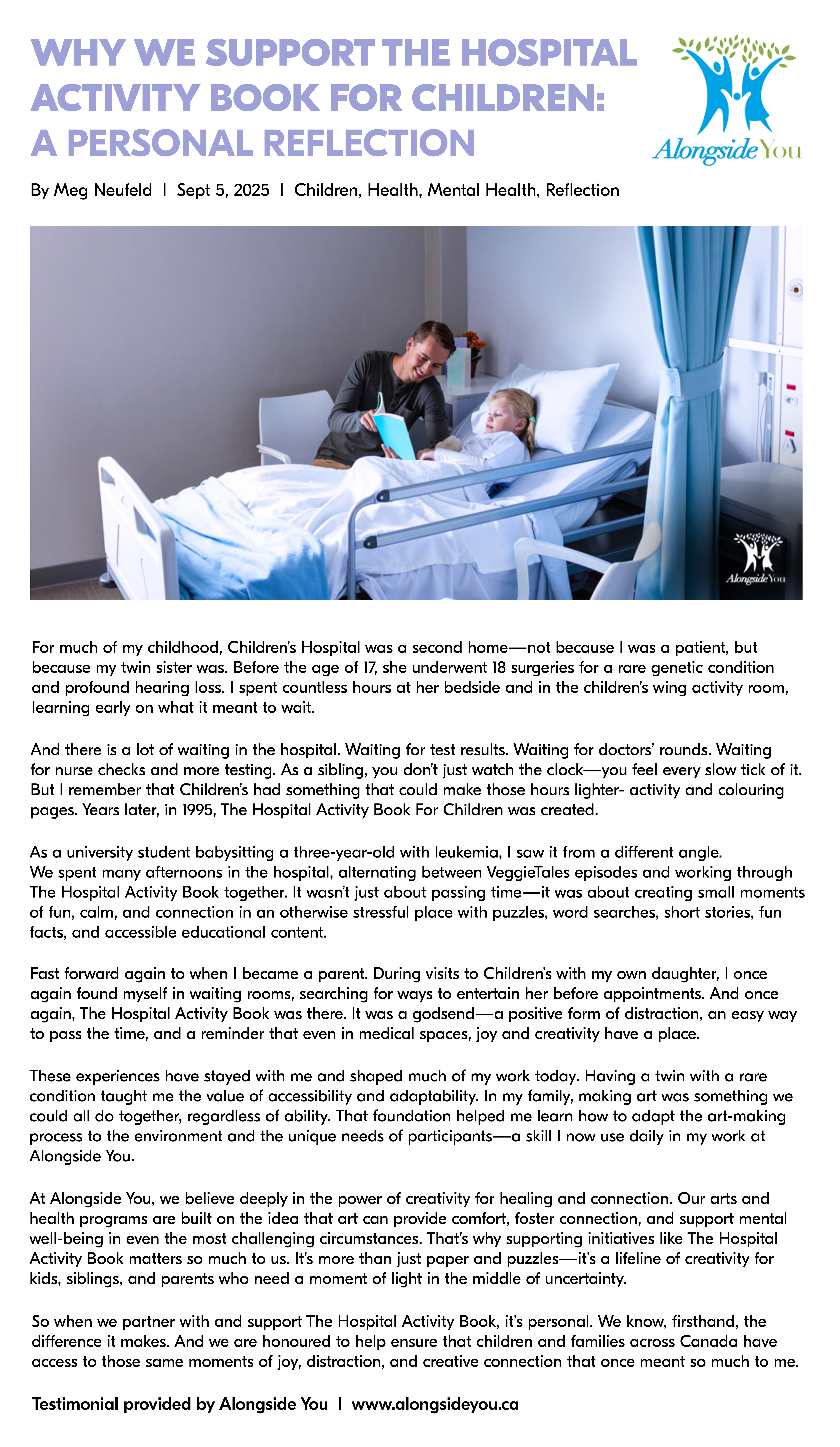 The Hospital Activity Book for Children began in 1995 as an idea when our publishing company was donating children’s videos and books to the local hospital. We noticed how important it was to keep children’s minds occupied at a very difficult time. The book became an instant success through community and business support. The book distribution base has expanded over the years to include hospitals, medical service units, pediatric centres, victim service units and many other services – wherever kids are in need of a healthy distraction during a challenging time.